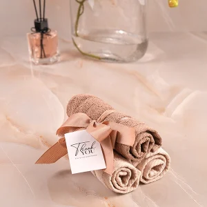 پک سه عددی حوله رنگ کرم نسکافه با ربان کرم