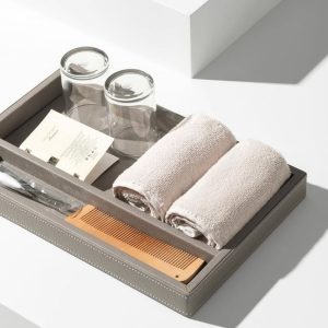 سینی چرمی مخصوص چیدمان حوله و اکسسوری