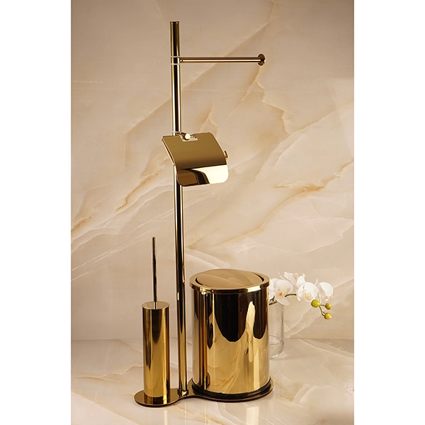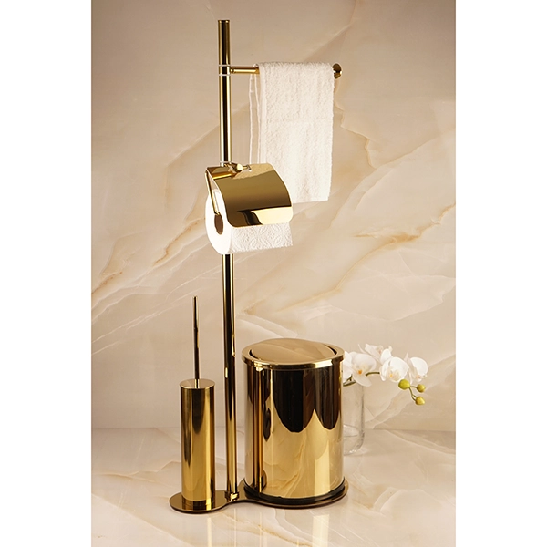 استند ایستاده با جای دستمال و حوله و سطل و فرچه رنگ طلایی براق