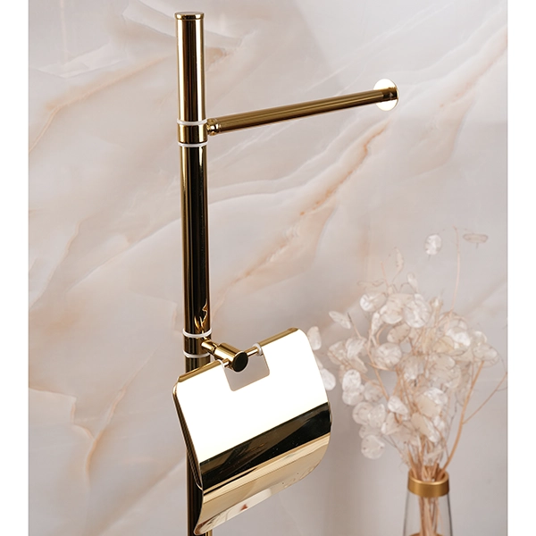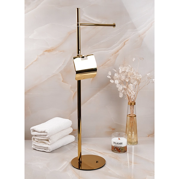 استند ایستاده جای دستمال و حوله ی پایه گرد برنجی رنگ طلایی براق