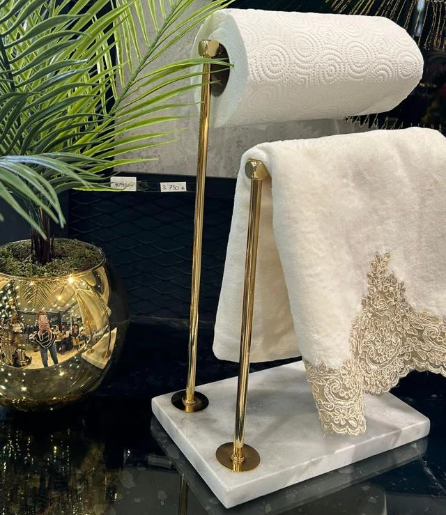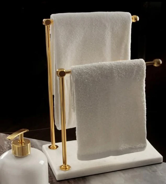 استند رو میزی دوبل پایه سنگ سفید رنگ طلایی s-1005