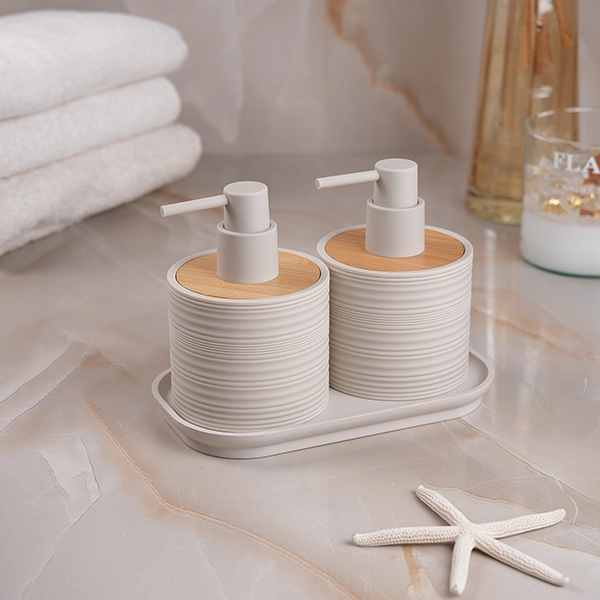 جا مایع دوقلو اکرولیک خط ریز بامبو رنگ کرم وانیل