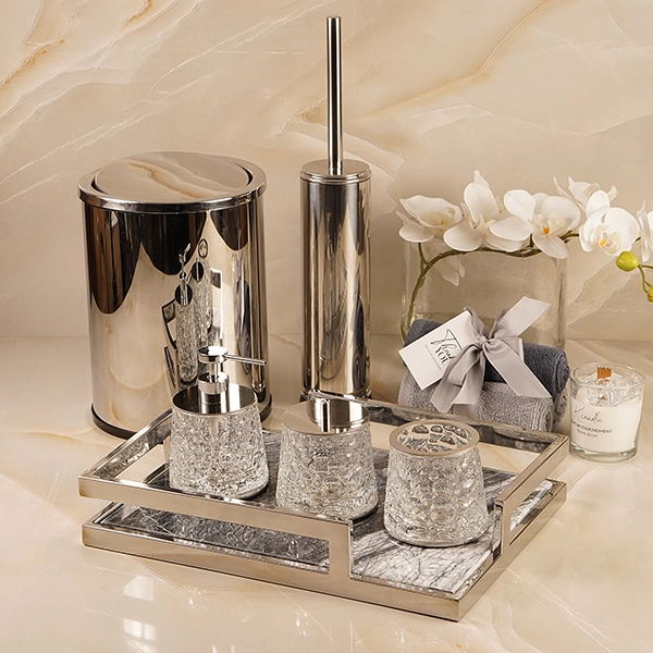- ست سرویس بهداشتی کریستالی با نیم ست توپی و سینی کفه سنگ