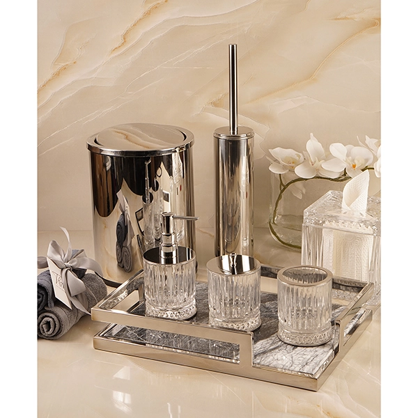 - ست سرویس بهداشتی کریستالی با نیم ست رده رده و سینی کفه سنگ رنگ کروم براق