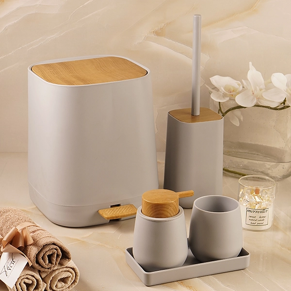 ست سرویس بهداشتی 5 پارچه ی میامی رنگ طوسی روشن چوب