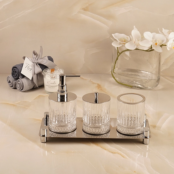- 4 پارچه شامل: جای مایع | پنبه دون | جای مسواک | سینی
