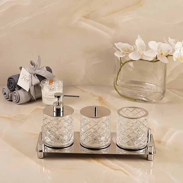 نیم ست کریستالی طرح لوزی با سینی رنگ کروم براق کد60